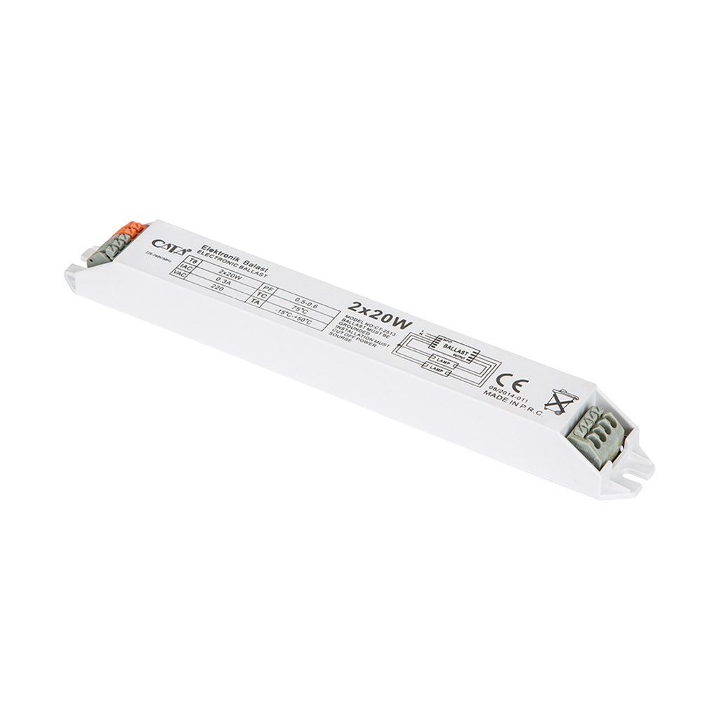 Cata 2X20 Elektronik Balast Ct-2513 Elektronik balast modeli olup, sağlam ve dayanıklı bir yapıya sahiptir. Elektronik balastlar mekanik balastlara göre daha az enerji harcarlar ve güç kayıpları düşüktür. Cata balast, yüksek kaliteli ve sağlam yapıda olması ile uzun ömürlü kullanım olanağı sunar.